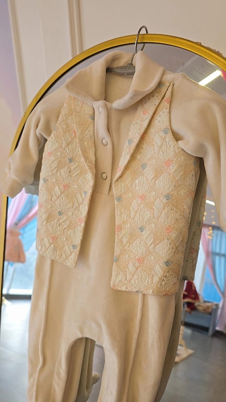 Dress your little prince in sophistication with this exquisite three-piece ensemble, designed for special occasions and cozy, high-end everyday wear. This set combines timeless style with the softest materials to ensure your baby looks charming while staying perfectly comfortable.